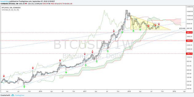 BTC on the Daily TF with Descending Triangle, a pattern every person in crypto has been looking at for the best past of 2018, I wrote about it here; link