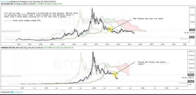 I noticed the above similarities that BTC was showing to the path Silver had already taken. Which got me thinking…. What if this consolidation and relatively narrow ranging continues… all year!?!