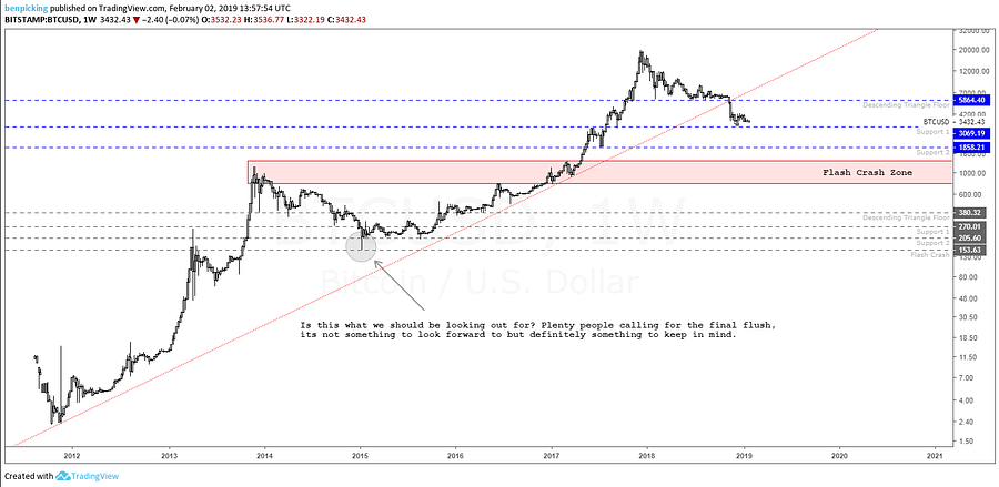 Something that we can’t lose sight of and therefore have to consider is, that we will not be heading straight back up to our ATH (sorry to break the news) and we might not take a one way ticket through purgatory either.
