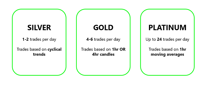 Platinum — Offers a combination of strategies in one trading Bot, focus is on optimising trading capital across a range of instruments to maximise the impact of compounding.